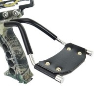本体左右に、スプリングを搭載した上級者向きのスリングショットです。 弾を発射する際に、ゴムで押し出される力だけでなく、 スプリングが戻る力が加わるため、通常のスリングショットよりも威力が高くなります。 メーカー情報によると、約20m先のターゲットを狙う仕様となっており、 ゴムをある程度引くことで、スプリング保持部分にサイトが現れます。 9.5mm以上のスチール、または鉛弾を使用してください。 ■サイズ: 高さ:約15.5cm、長さ:約10cm ■カラー: カモフラージュ ■重量: 約609g ■付属品: 替えバネ(強) x1セット (1セット4個使用) 替えゴム(弱x2、強x1) 計3本 六角レンチ(リストロック固定用) 弊社作成の簡易取扱説明書・注意書き ■状態: 輸入品のため、パッケージの状態が悪い場合があります。 検品のため、一度開封しております。 ■その他: ・リストロック部分は折り畳み式ではなく、固定になります。 ※現在、別売替えゴムの取り扱いがございません ・大変パワーがある商品ですので、上級者向けです ・他の発射装置同様に、空撃ちは絶対に行わないでください ・9.5mm以上の金属弾を使用してください(弾が軽いと空撃ち状態になります) ■コメント: 外観を見ただけでもワクワクしてくる商品です。 エイミングスポーツはもちろん、インテリアとしてもカッコいいです♪ |