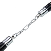 龍の模様がデザインされたヌンチャク! チェーン部分はベアリングがついており、 ベアリングタイプではないものに比べ絡まりづらくなっています。 ■サイズ: 一本の長さ:約32.5cm(ベアリング部分含む) チェーン部分:約14.5cm(ベアリング部分含む) ■カラー: ブラック (チェーンと取り付け金具:シルバー) ■重量: 約384g (本体とチェーン部すべて込み) ■素材: 木製 チェーンと取り付け金具:アルミ ■状態: ロットにより若干色味に違いがある場合があります。 ■その他: 見た目によるクレームはお受けできません。 その分お安く設定させていただいております。 当店取り扱いの「ベルベットタイプ ヌンチャクケース ブラック」に収納すると、ベアリング部分とチェーン部分がケースからはみ出す形になり、完全に紐を締めることができません。 ■コメント: チェーンの取り付け部分がベアリングタイプになっていますので、 外観品質を求めるのでなければそこまで悪くないかと思います。 |