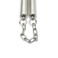 渦模様が全体的にデザインされたステンレス製のヌンチャク! ヌンチャクの芯はなく、空洞になっているので比較的軽いタイプです。 チェーン部分はベアリングがついており、 ベアリングタイプではないものに比べ絡まりづらくなっています。 ■サイズ: 1本の長さ 約29cm チェーンの長さ 約17.5cm(ベアリング部分含む) グリップ部直径 約2cm ※目安 ■重量: 約302g(本体とチェーン部分すべて込み) ※個体差あり ■カラー: シルバー ■素材: ステンレス鋼 ■状態: 細かい傷、仕上げ処理が甘い部分がある場合があります ■その他: ロットにより、デザインなどの仕様が変更となる場合があります ■コメント: 素材はステンレスですが、芯がなく空洞になっており軽量ですので練習用としてもおすすめ! |