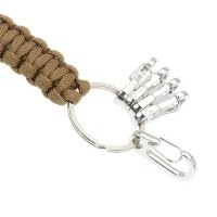 自宅や車の鍵をまとめて持ち運ぶことができるパラコードキーホルダーです。 ミリタリーファッションによく合うベージュカラーで ズボンのベルトループやバックに装着出来ます。 ほどくとロープになるパラコード紐を使用しているので、 緊急時にも役立ちます。 ■サイズ: パラコード部分:約10m 紐部分:約4.5cm ※目安です ■カラー: ベージュ ■重量: 約33g ※目安です ■素材: パラコード (ナイロン) ■状態: ロットにより多少デザインが変わる場合があります。 ■その他: ※パラコードを一度ほどくと元に戻すのが大変ですのでほどく場合は注意してください ■コメント: 普段のファッションのアクセントとしてもオススメです♪ お好みでナスカンなどを替えてみたりなど、アレンジも出来そうです! |