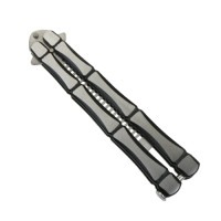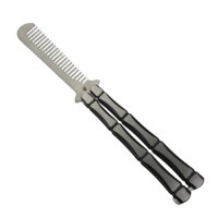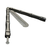 骨に似た持ち手デザインのバタフライコーム(櫛)です! コーム部は丸みがあり、使用するにはグリップ後部の固定を解除し、左右に動かしてから再固定してください。 ■サイズ: ・収納時:全長約14cm 幅約3.4cm ・オープン時:全長約23cm 幅約3.4cm ・持ち手部分:13.5cm ・櫛部:約9.5cm ■カラー: ブラック・シルバー(商品画像参照) ■重量: 約150g前後目安 ※個体差があります ■素材: ステンレス ■状態: ・ロットにより若干のデザイン変更がある場合もございます。 ・製造上の細かい傷等がある場合があります。 ■その他: ナイフの形を模したものなので「刃物」ではありません。 ご使用状況によっては振動等でネジが緩くなる場合がありますので、その際はネジを固定し調節してください。 またグリップの固定金具を扱う際に、とてもかたい商品があります。 ■コメント: 実際にバタフライナイフのようなアクションができるかどうかの保証はありません。 あくまで、「二分割グリップの折りたたみタイプ」としてお買い求めください。 |