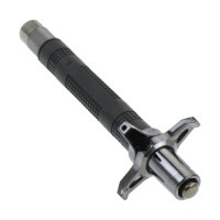 約77cmに伸縮するフリクションロック式警棒で、可動式の十字鍔を搭載しています。 そのサイズ感と構造は威嚇効果抜群で、緊急時の心強い道具となります。 滑りにくいラバー製グリップはしっかり握れて力を伝えやすい設計。 鍔は回転機構により一文字型から十字型に形状を切り替え可能で、収納時にはコンパクトに、使用時には手を保護する範囲を広げられます。 さらに、円錐型のグリップエンドはガラスを割る際にも活躍します。 ■サイズ: 約29〜77cm(30インチ警棒相当) ■重量: 約740g ※個体差あり ■カラー: ブラック ■素材: 合金鋼 ■収納タイプ: フリクションロック(摩擦ロック)式で、警棒を振って出し、硬い地面に叩きつけて収納します。 ■その他: ・工業製品ですので、多少の細かい傷などがある場合がございます。 ・ロットによりキズ防止程度の簡易的なホルスターが付属する場合があります。 ・シャフトの先端(Tip)は取り外せますが、不良ではありません。 ・グリップエンドは取り外しが可能ですが独特な形状のため、付け替えは不可です。 ■コメント: 重量はスチール素材と変わらないくらいの重さで、伸ばすと約77cmの長さとながく、警棒の中では大型です。 700gを超えるほどの重量がありますが、その分、威力や迫力は申し分ないと思います。 長すぎると、警棒は伸ばすときにコツが必要になってきます。 グリップの下の方をもって振り出すと、伸ばしやすくなる傾向があります。 〇すっぽ抜けが気になる方へ グリップエンドに、直径約5mmほどの穴があります。 自作でする必要がありますが、すっぽ抜け防止のストラップのようなものがつけれそうです。 |
